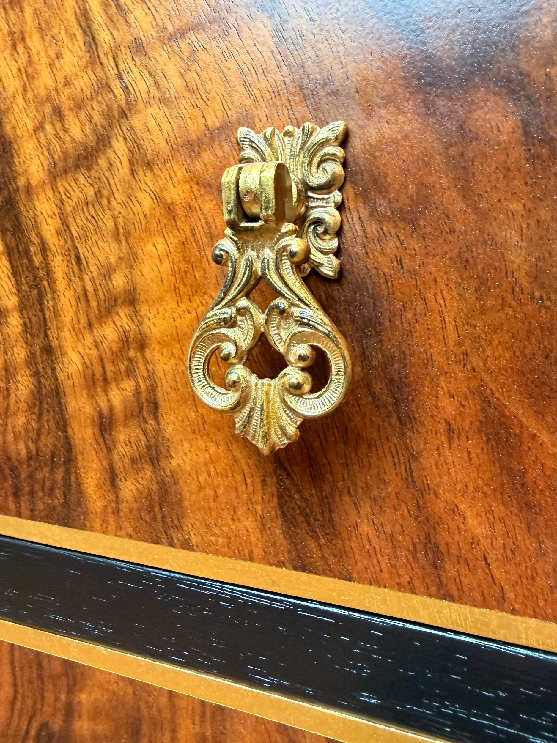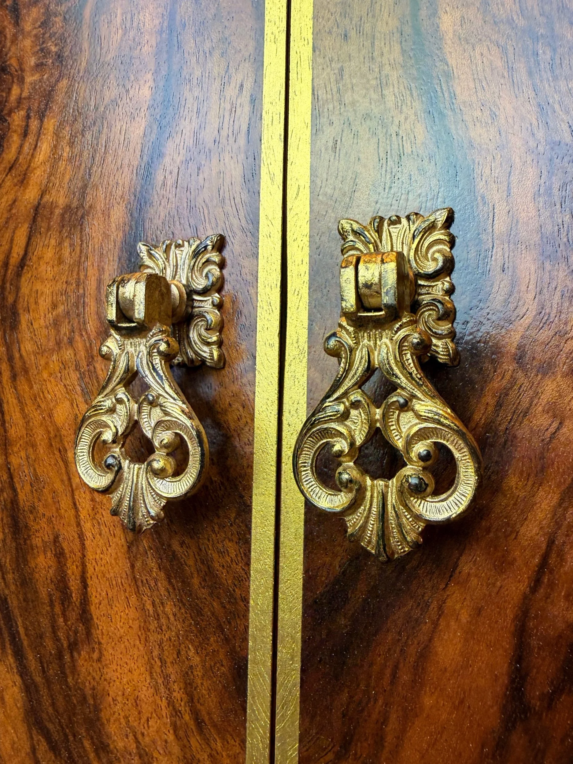 • Original ornate handles refinished in an antique gold/ black effect.